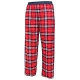 Buy Now Navy Blue Red plaid check flannel cotton pants for lounging, sleep, sports. Unisex relaxed fit,