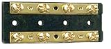 Black molded base with two solid brass bus bars and #8-32 threaded screws. Corrosion resistant.