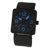 Save New Men's Black Dial Blue Number Rubber Band Sport Outdoor Square Case Quartz Wrist Watch