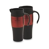 1273 Features: -Set of two mugs. -Red color. -BPA free plastic exterior. -Stainless steel accents. -Handle fits most cup holders. -Manufacturer provides lifetime limited warranty on defects in material or workmanship. -Overall dimensions: 9'' H x 9'' W x 5'' D.