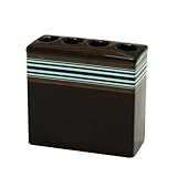 Capri Stripe by Raymond Waites ceramic toothbrush adds charming accents to your bathroom. It creates fashion in any bathroom with rich mineral blue stripes on a chocolate ground. Imported Easy Care wash with arm water Durable ceramic Coordinates with matching Capri Stripe Shower Curtain (sold separately) Raymond Waits licensed design in brown and blue stripes Imported and made in China
