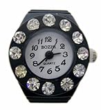 OnSale Fashion Jewelry - Cobalt Black with Clear Gemstones Stretch Ring Watch
